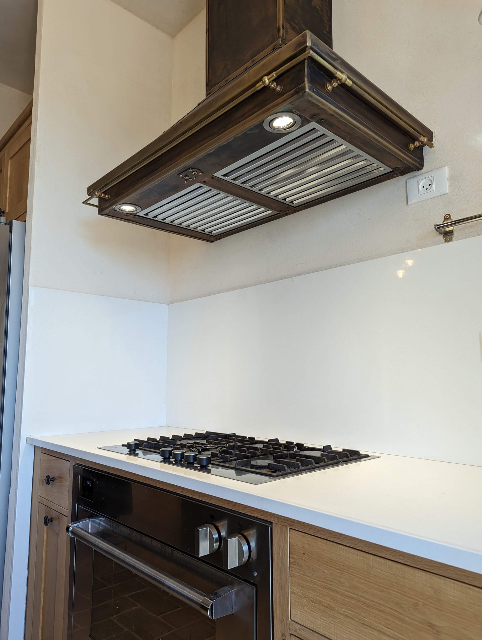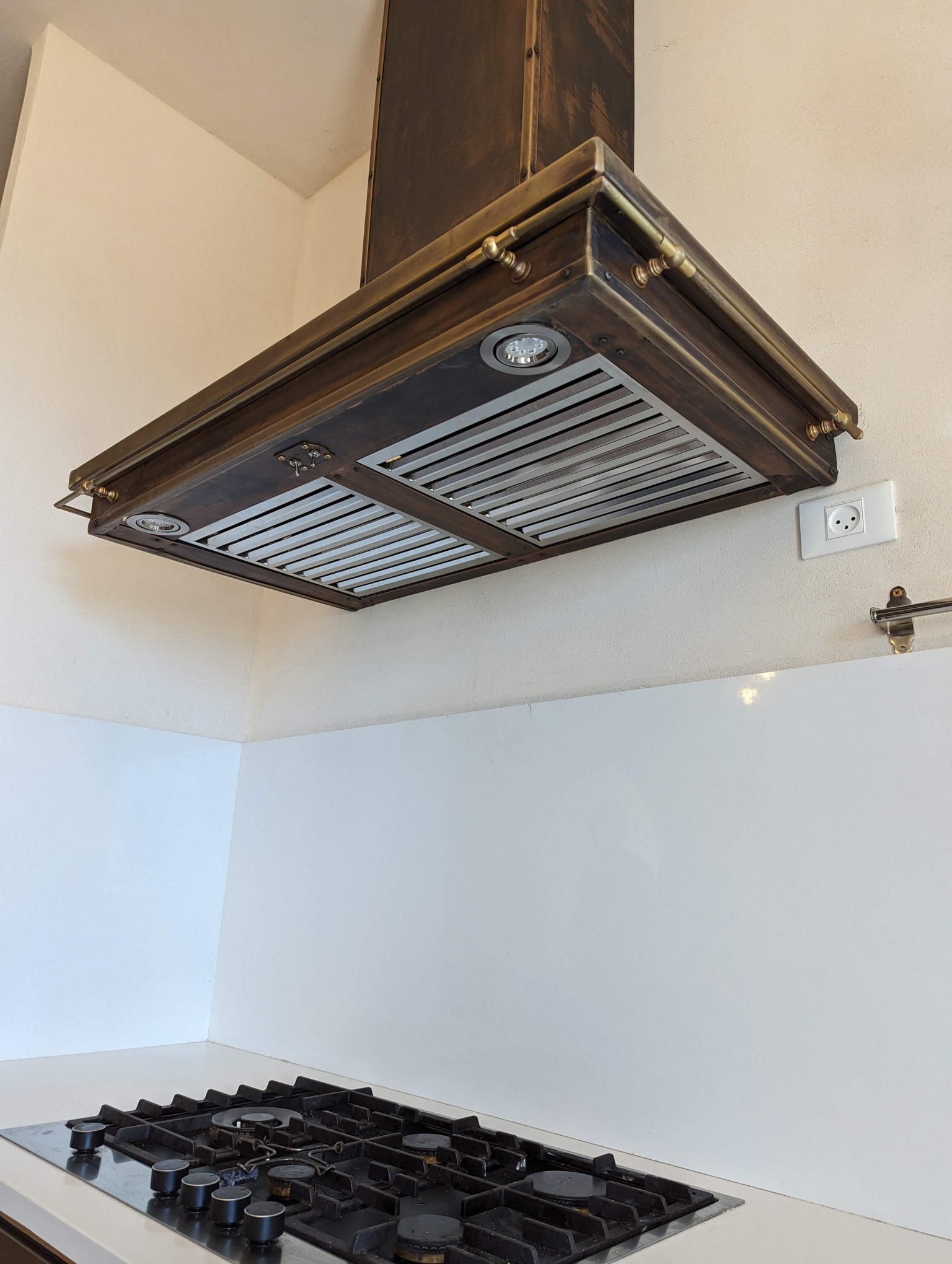 השימוש בפליז ובנחושת מעניק לקולט אדים מראה טבעי, אלגנטי ועמיד לאורך שנים.